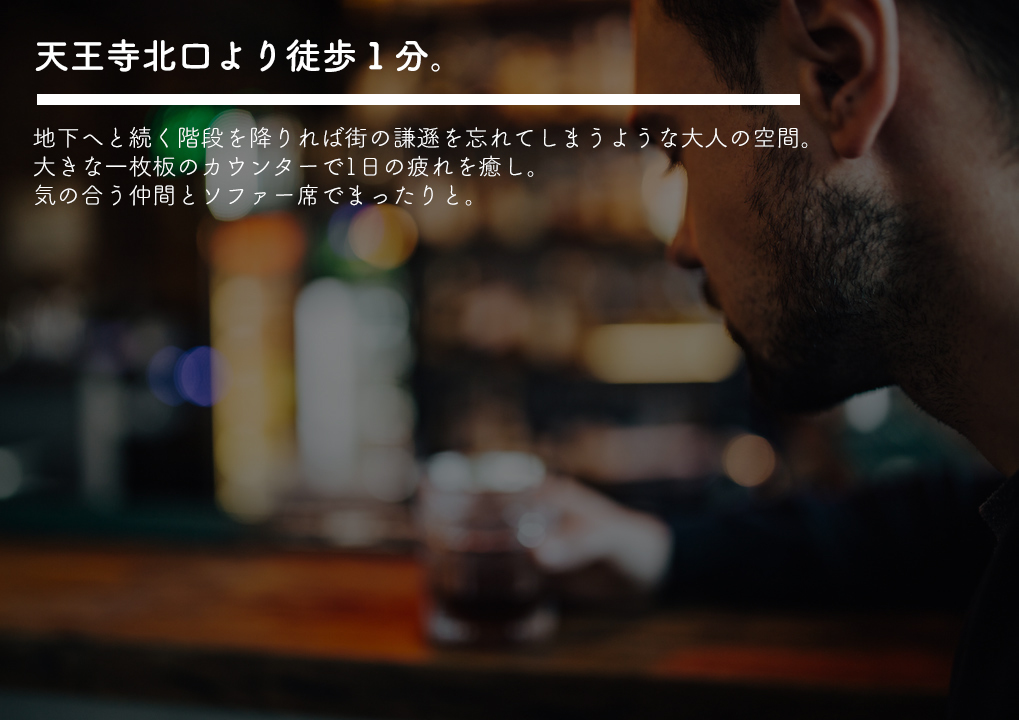 JR天王寺駅の北口(出入口)に面しています玉造筋(大通り)を東へ徒歩1分です。ブックオフビル(赤い壁面ビルB1F)目印です。